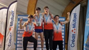 Enfin, le relais 4×1 tour cadets, fort de leur buzz sur Instagram avec la chute chorégraphié et leur 800.000 vues, n’allaient pas faillir cette fois. Avec la même équipe : Lilian Manssiat (24.6) / Jules Séon (24.0)/ Armand Piegay (23.5) et Matias Lavieille (21.8), ils amélioraient leur prestation de plus de 3 secondes avec un très bon 1’34.09. Ils montent sur la 2e marche du podium et réalisaient par la même la 6e performance du bilan national.